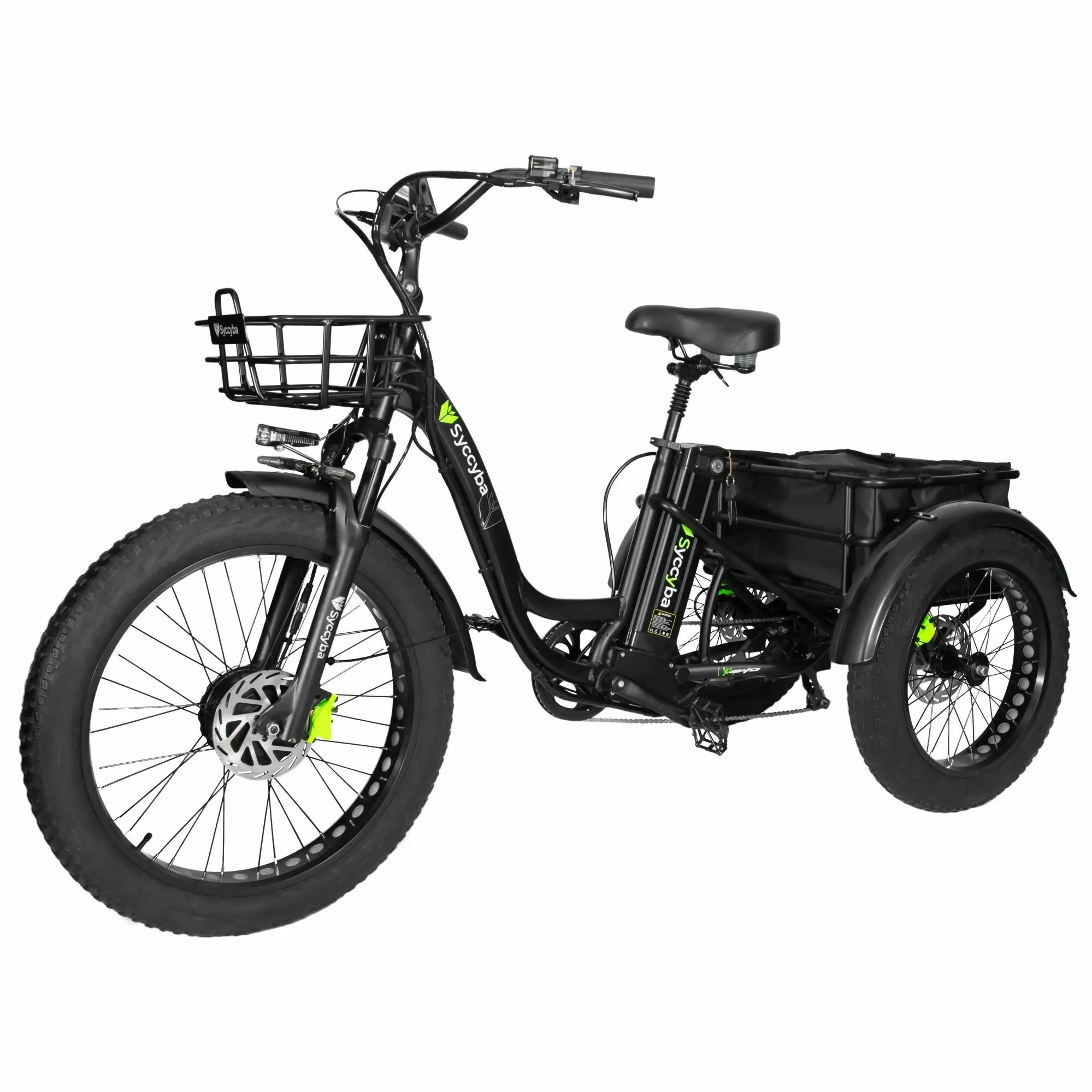 Все электровелосипеды Syccyba изготовлены из прочных материалов и оснащены просторными корзинами, что делает их удобными для перевозки различных грузов. Благодаря такой вместимости, Syccyba Trike идеально подходит для доставки товаров.